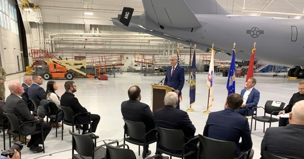 LINCOLN, NE – Against the backdrop of a KC-135 Stratotanker and an audience that included members of the Nebraska National Guard and the Committee on Pacific Conflict, Governor Jim Pillen announced the publication of the Annual State Threat Assessment. The report is a product of the Committee, which was created through the passage of LB 1300 in 2024. It was the first such committee created among U.S. states.