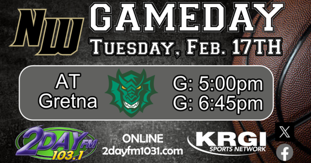 New to the Vikings' schedule is a matchup with the Gretna Dragons. The Gretna girls come in with a record of 12-8. The Gretna boys are 12-9. Listen to both games on 103.1 FM & 2dayfm1031.com. The girls' game is scheduled to tip off at 5:00 pm, with the boys' game to follow at 6:45 pm.